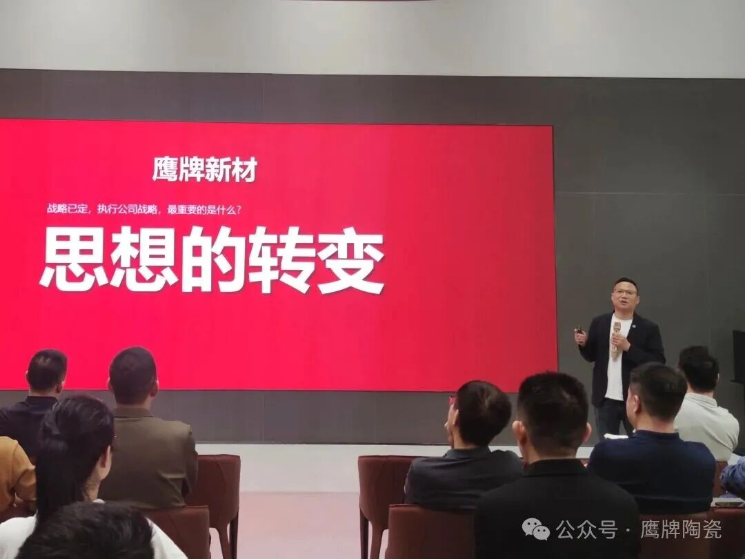 面对当下以鹰牌新材布局旧改蓝海的重要战略举措,全体鹰牌人当迅速完成思维转变,在稳住陶瓷基业的同时,发力鹰牌新材,打造优势区域,开拓下沉市场。