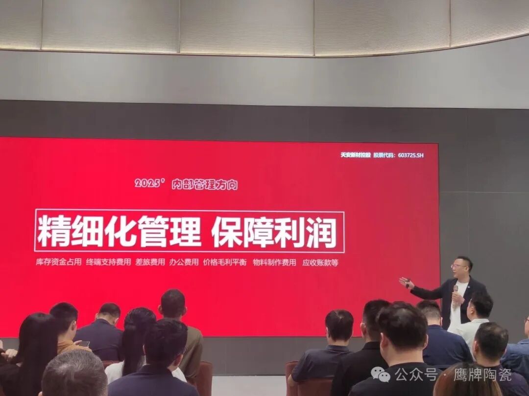 旧地图找不到新大陆。陈总号召全体营销人员,积极发挥“天安+鹰牌”的平台优势,拥抱新媒体,凭借营销模式破局,实现瓷砖突围与新战略的突破,为打赢2025收官之战奠定坚实基础。