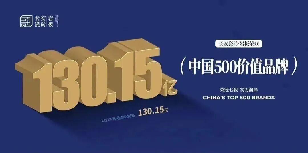品牌建设是一场马拉松,而非百米冲刺,长安瓷砖深谙此道。其不仅连续多届蝉联“大理石瓷砖十大品牌”“设计师推荐品牌”殊荣,还连续7年荣登“中国价值品牌500强”榜单,品牌价值达130.15亿元,这一数字背后正是品牌长期主义的坚持。
