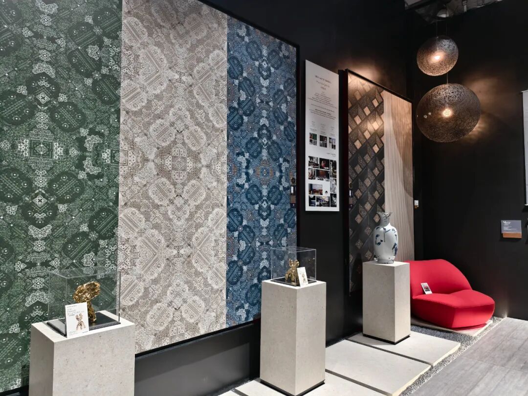 鹰牌2086瓷砖以“现代东方,岭南印象”为主题,通过三大核心亮点展示,将深厚的岭南文化转译为现代设计语言,首度打造“岭南印象馆”,构筑起一座可游、可赏、可感的沉浸式文化体验空间。