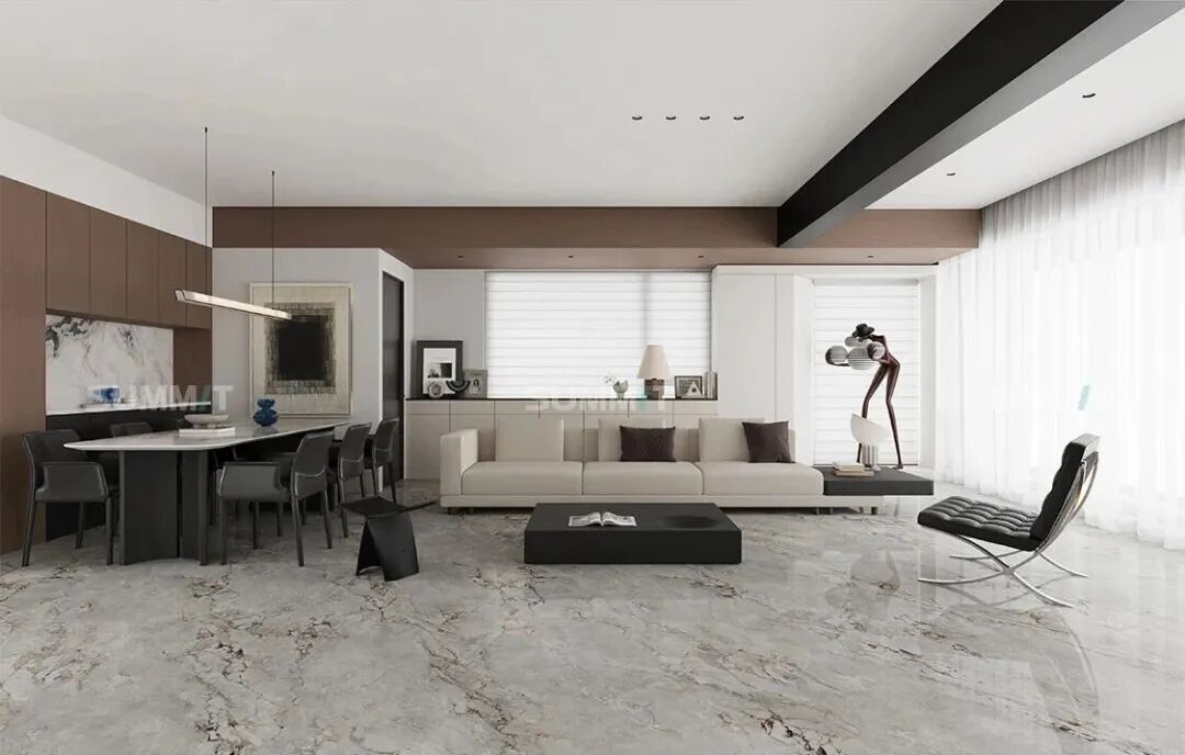 其“密缝·无间之境”系列以“<0.5㎜”的极致密缝为核心卖点,不仅还原了天然大理石的纹理质感,还可实现“整体无缝”的视觉效果,完美适配大平层、别墅等高端空间的装修需求。
