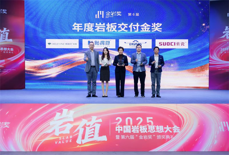 2025年12月18日,以“岩值”为主题的2025中国岩板思想大会暨第六届“金岩奖”颁奖典礼在佛山圆满举行。在这场备受行业瞩目的盛典上,索瓷集成岩板凭借其创新的交付体系和卓越的工程应用,成功斩获“金岩奖·年度岩板交付金奖”。