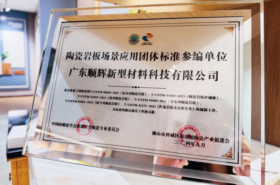 与此同时,顺辉天成岩板也在积极参与行业标准化建设。已累计参编多达13项国家标准,涵盖了《岩板》、《建筑室内装配式装修技术规程》、《陶瓷岩板》、《岩板产品规范》、《家具用陶瓷岩板》、《厨卫用陶瓷岩板》、《家电用陶瓷岩板》、《热弯陶瓷岩板》、《陶瓷岩板护墙板》以及《陶瓷岩板术语和分类》等多个重要领域。用实力奠定顺辉天成岩板在行业引领者地位。