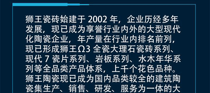 | 主营产品: | 高硬大理石瓷砖+现代质感系瓷砖+全品类瓷砖+全规格瓷砖 |