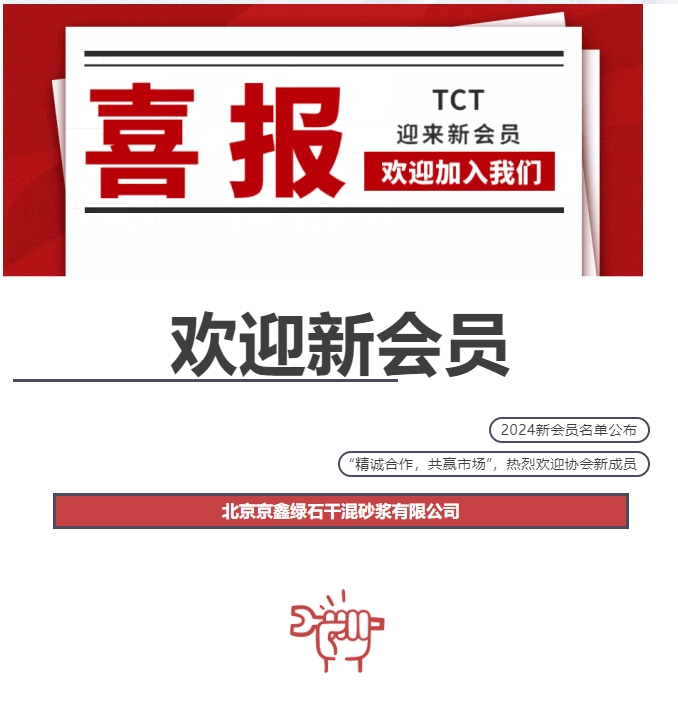 会员迎新 | 恭喜北京京鑫绿石干混砂浆有限公司加入TCT协会