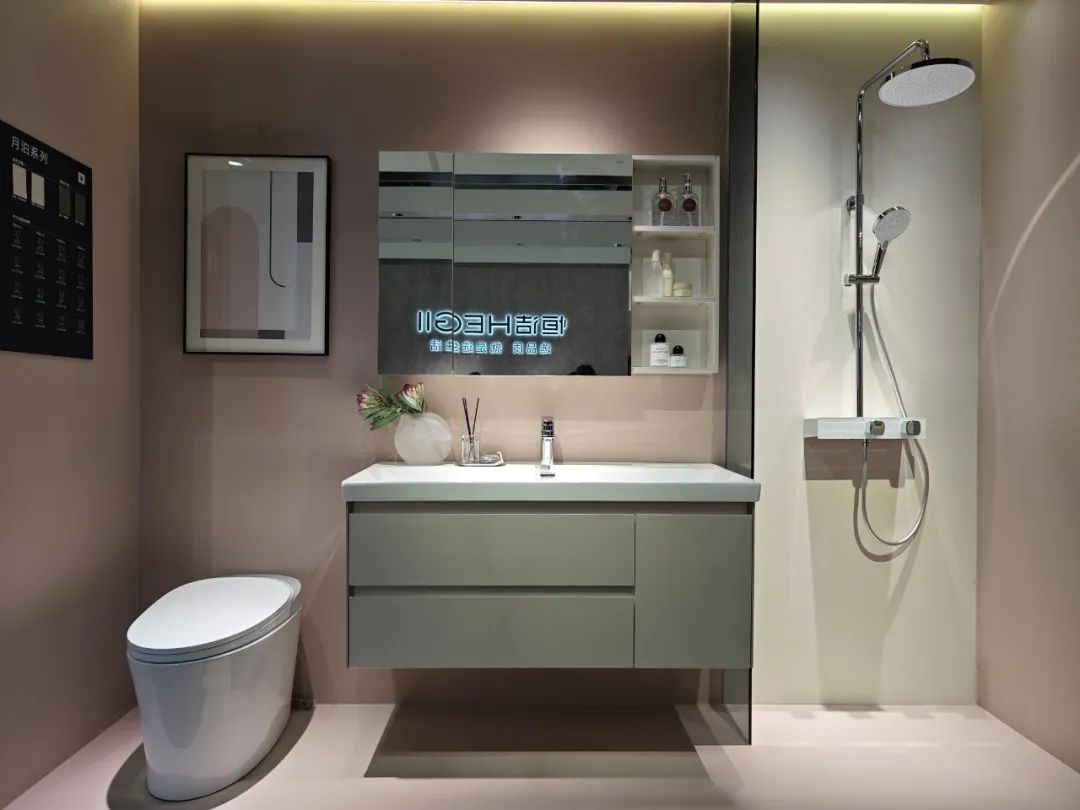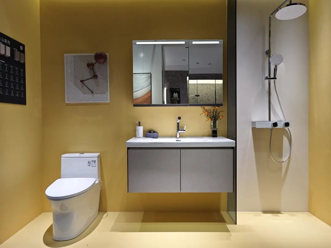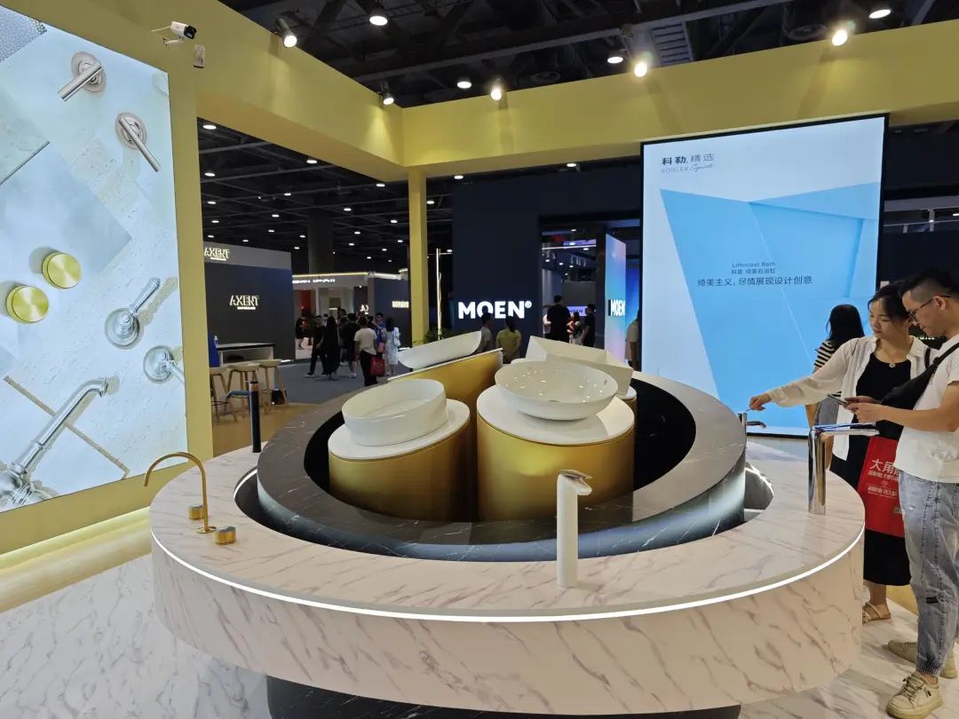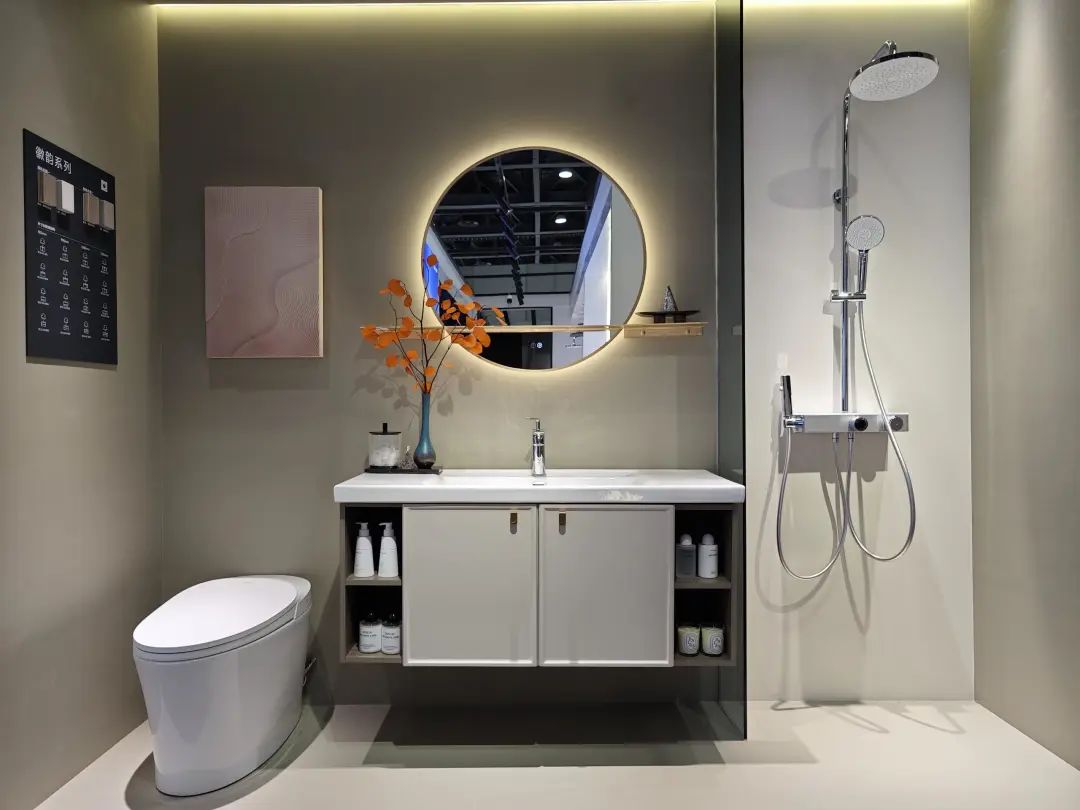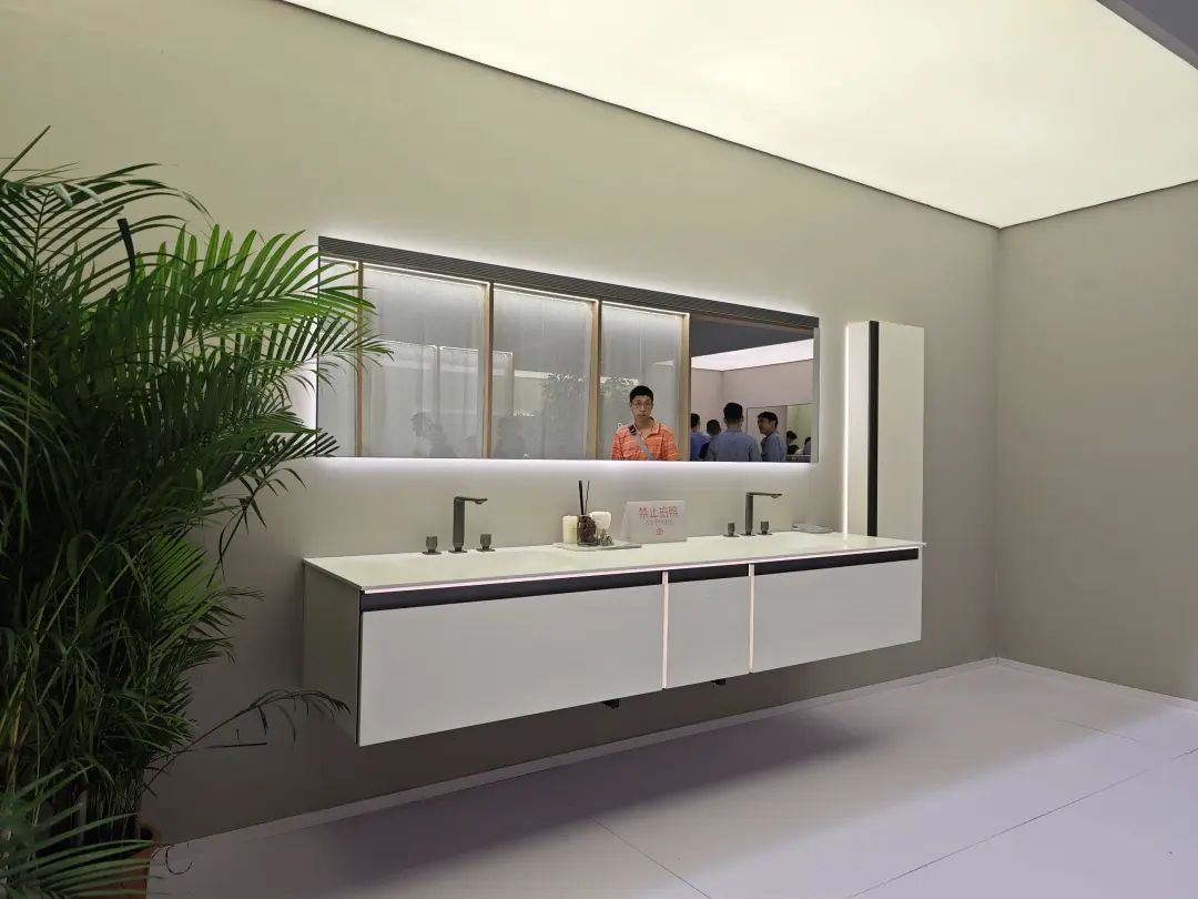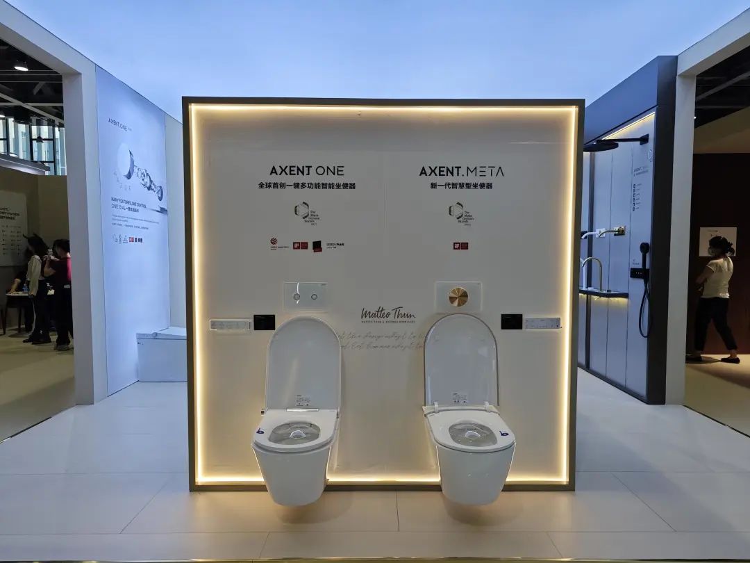 参展主题是“全卫设计,设计引流”,除展示ONE系列、META系列等多款智能马桶,还带了智能浴室柜、智能面盆龙头等一系列智能卫浴单品。