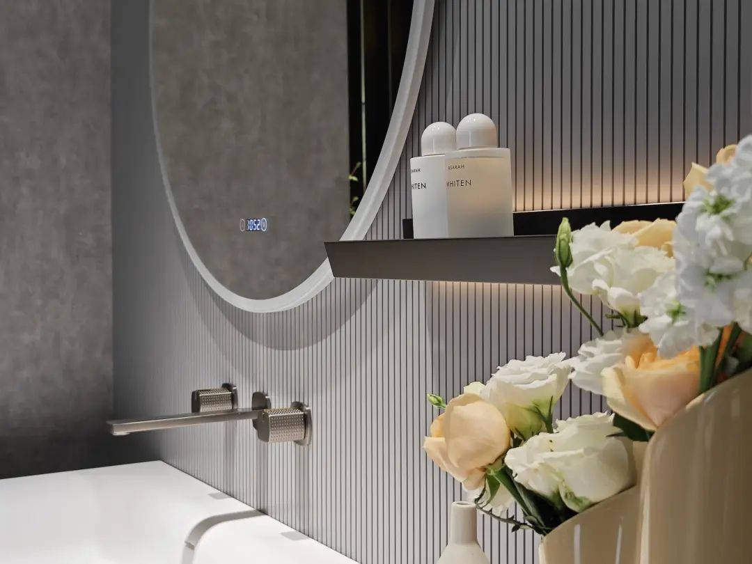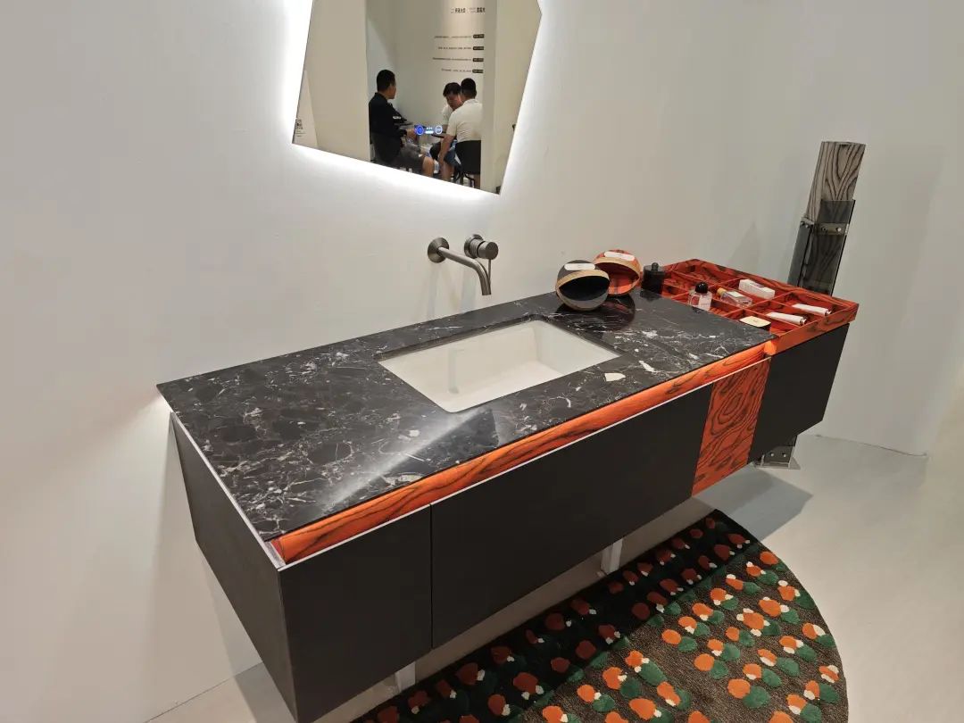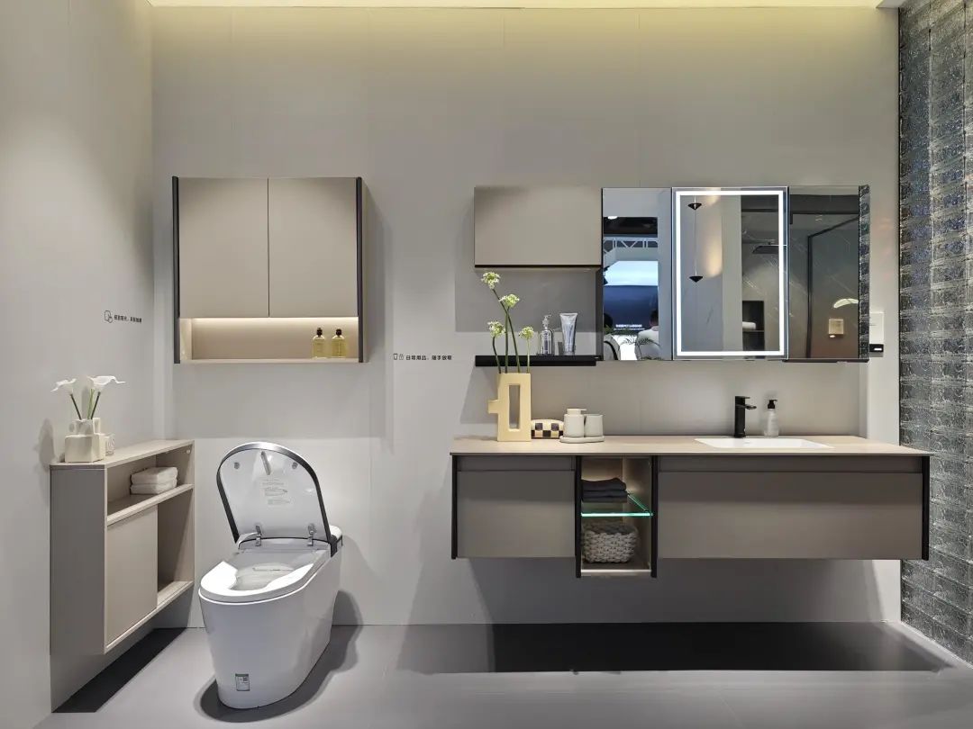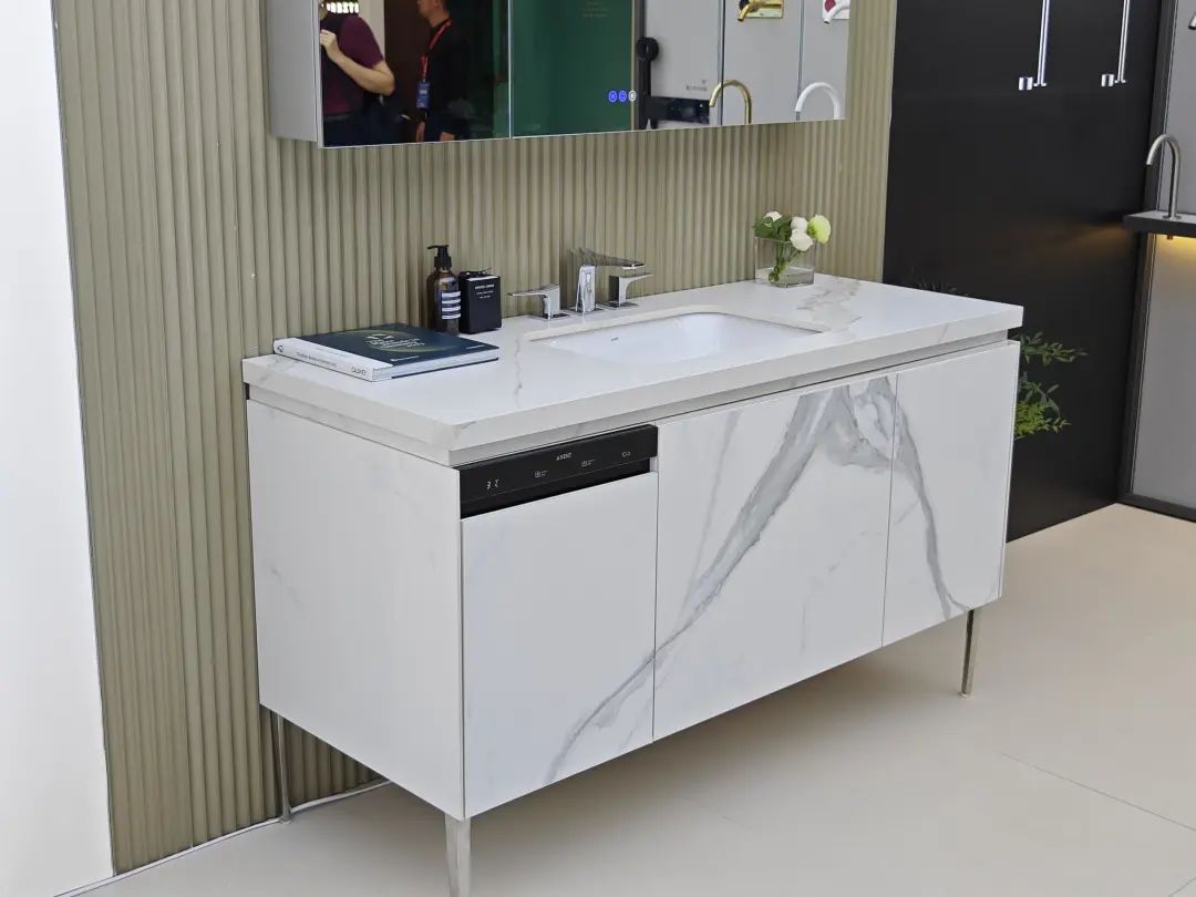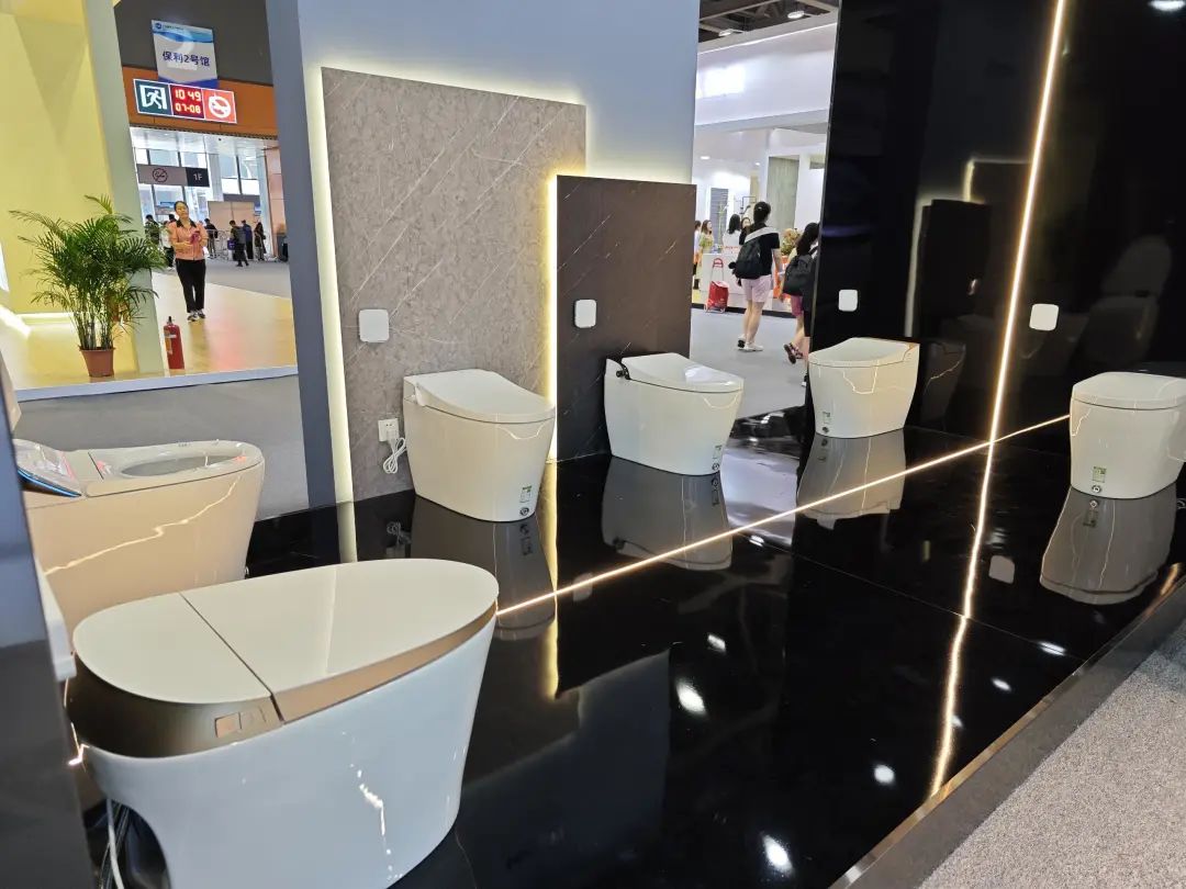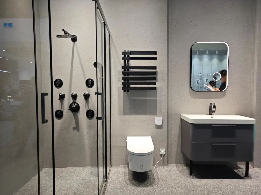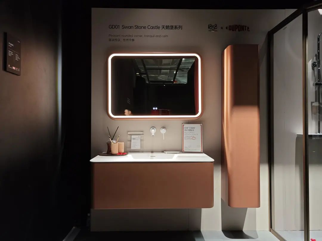 参展主题是“全卫设计,设计引流”,除展示ONE系列、META系列等多款智能马桶,还带了智能浴室柜、智能面盆龙头等一系列智能卫浴单品。