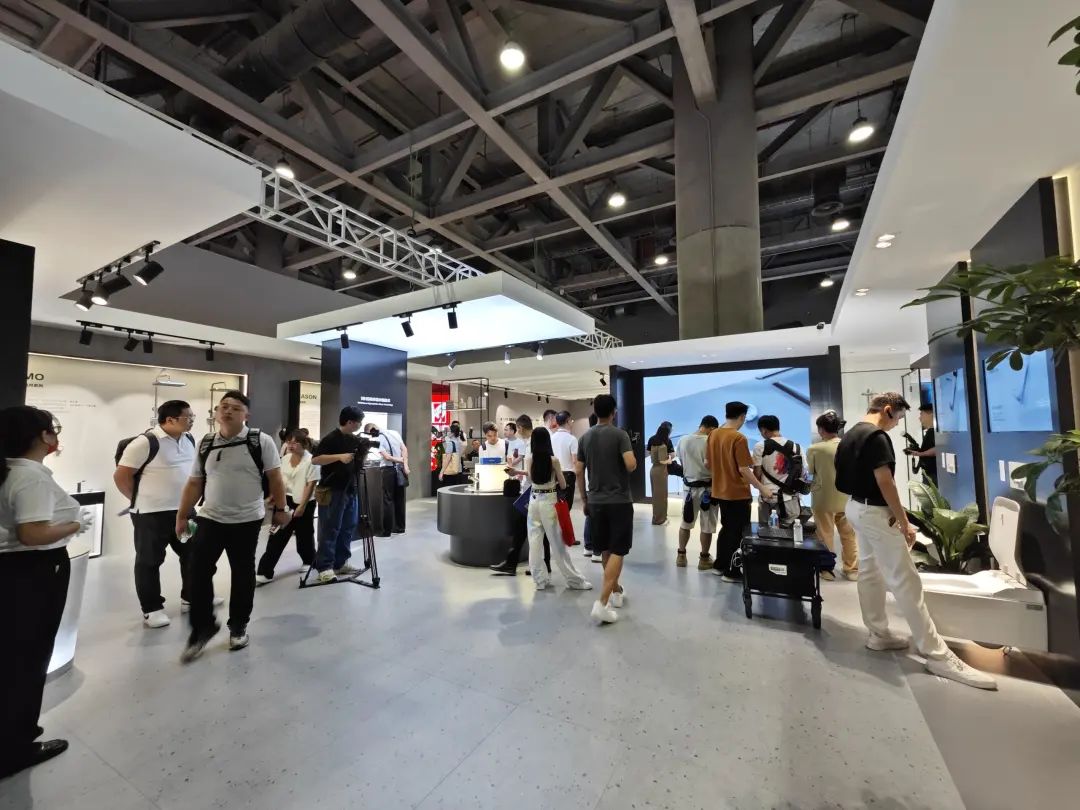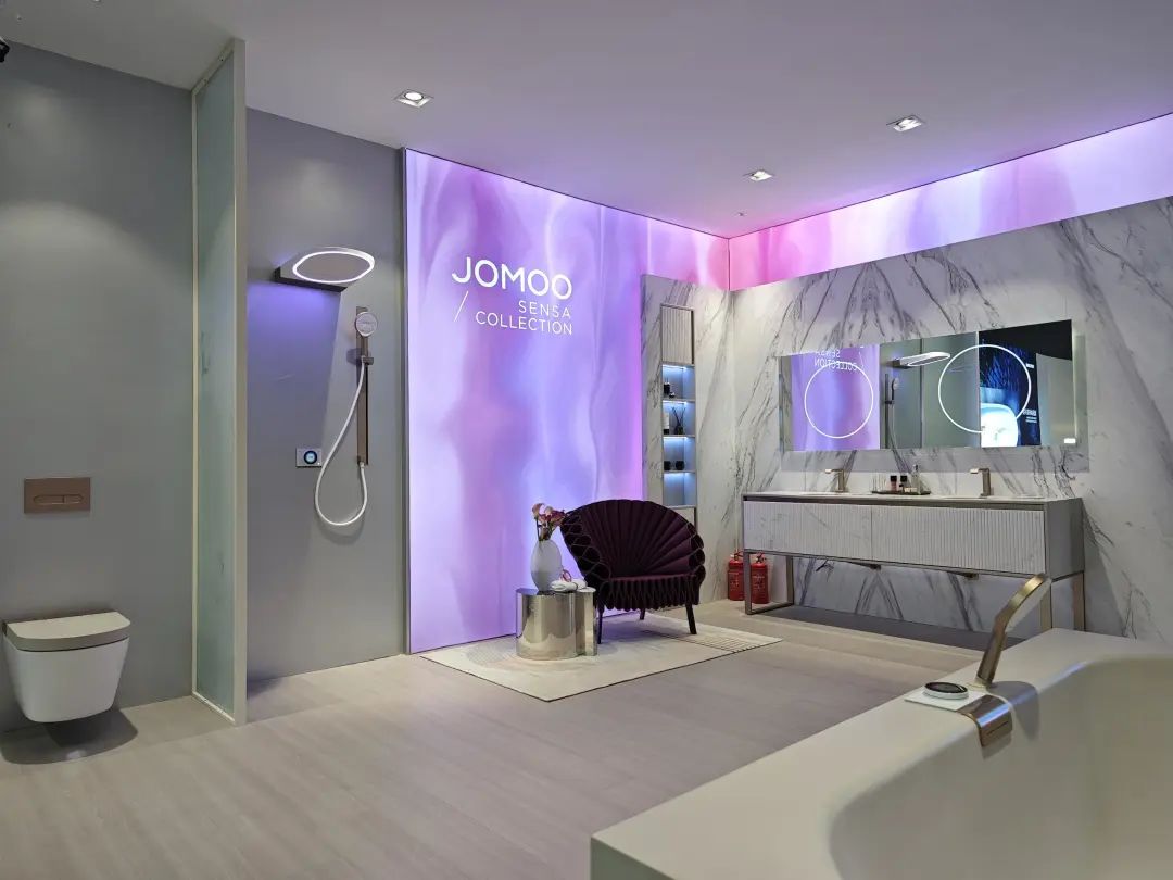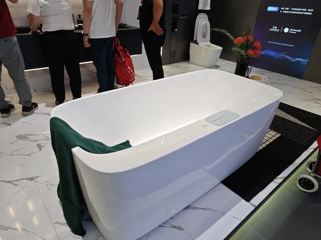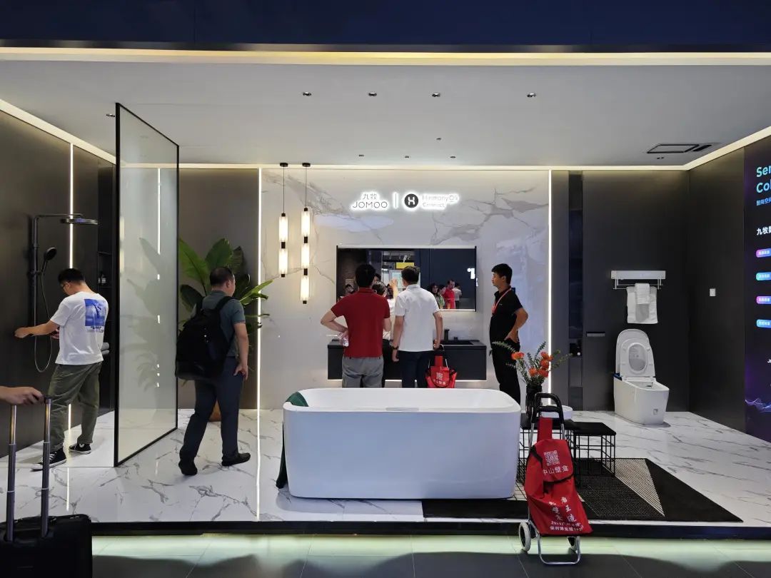 九牧在展台中心设置了智能马桶展示区,其中i90全水路除菌数智马桶格外抢眼。九牧还搭建了与华为鸿蒙系统联动的场景化数智卫浴空间,以及获得红点奖、德国创新奖的SENSA系列,同样吸引大量观众驻足观看。