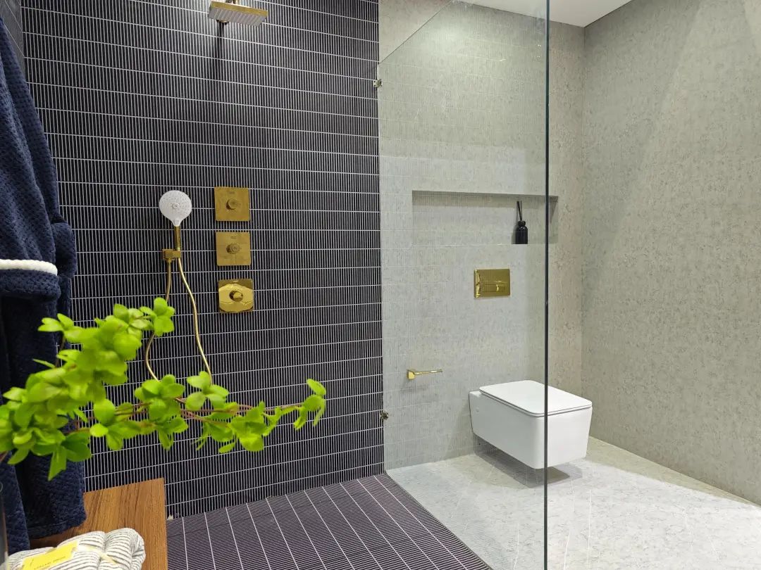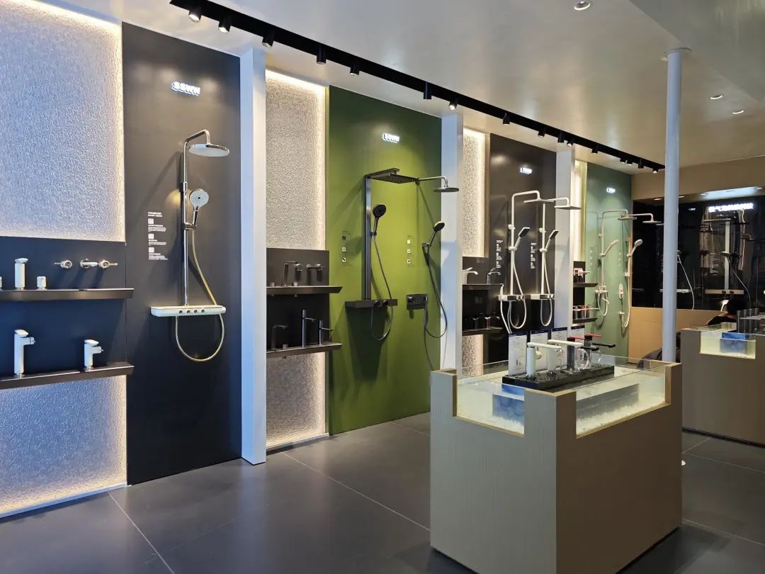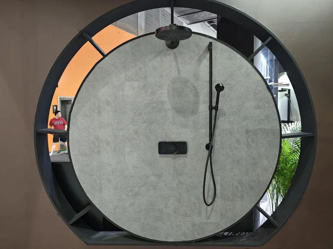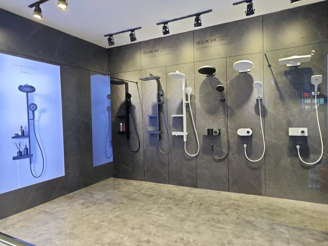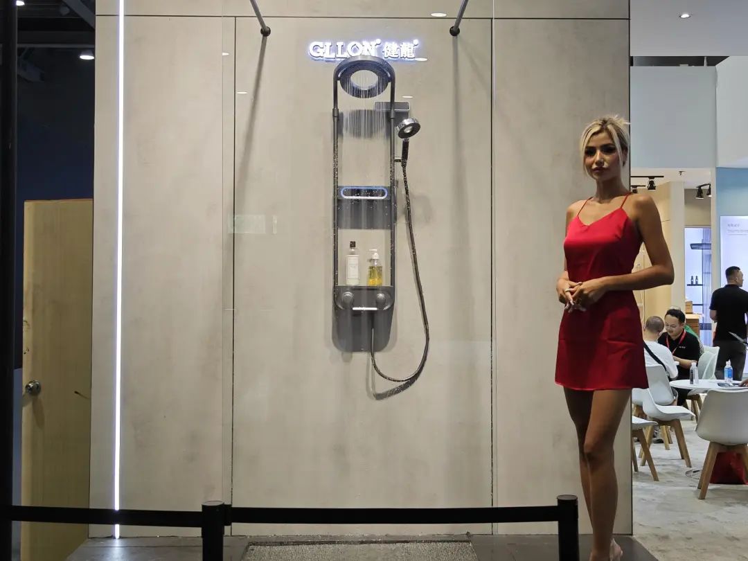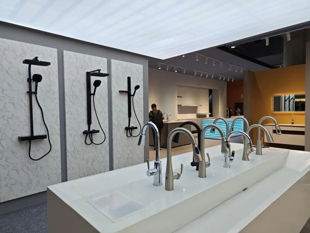 展品以淋浴花洒为主,主力产品为安装淋浴系统,多款产品都有黑、白、金等数种饰面。