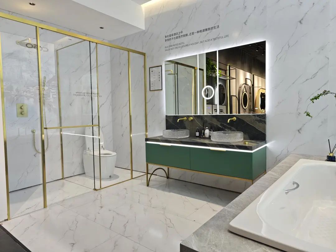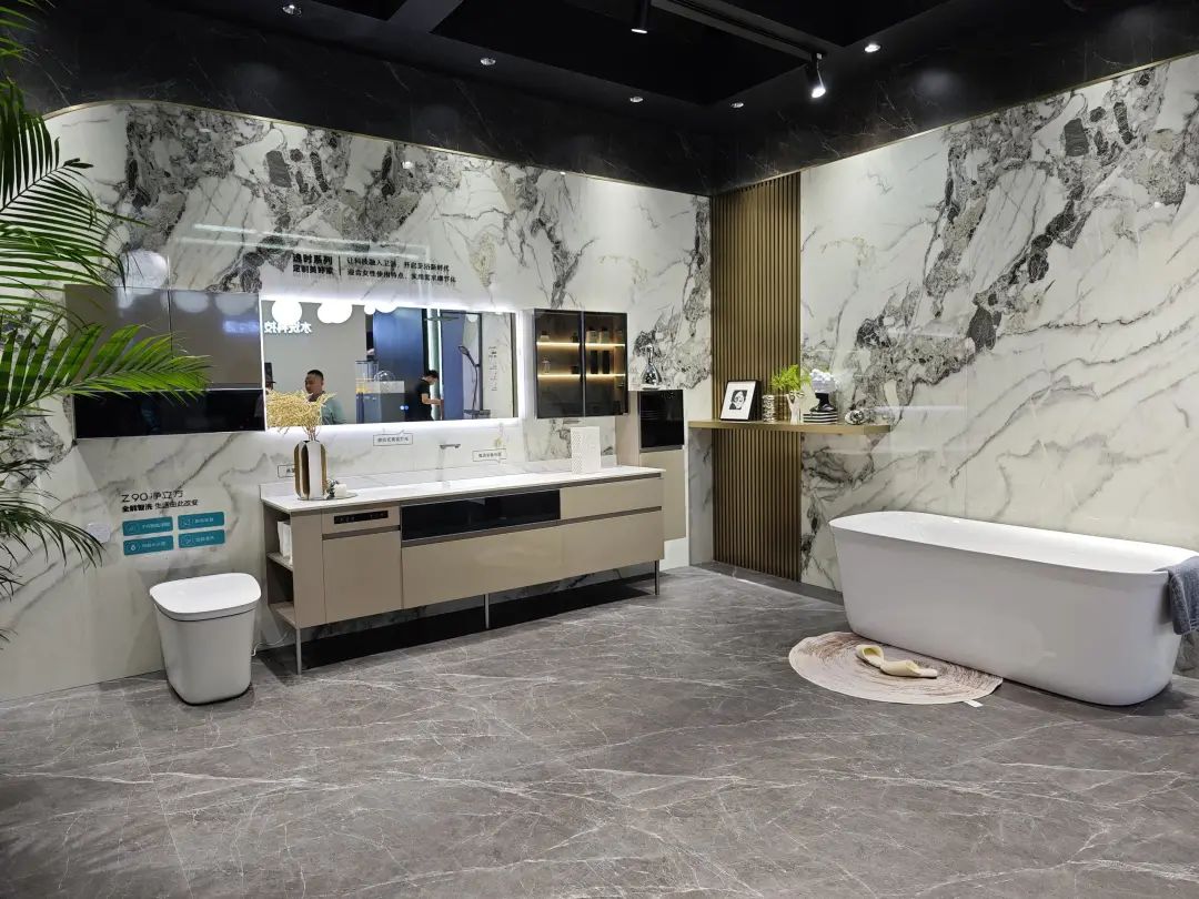 箭牌卫浴以“向智而行,此刻更好”主题参展,展示了福祉空间、克莱拉定制空间等多个空间场景,以及X7智能坐便器、语音交互唤醒镜柜等卫浴单品。