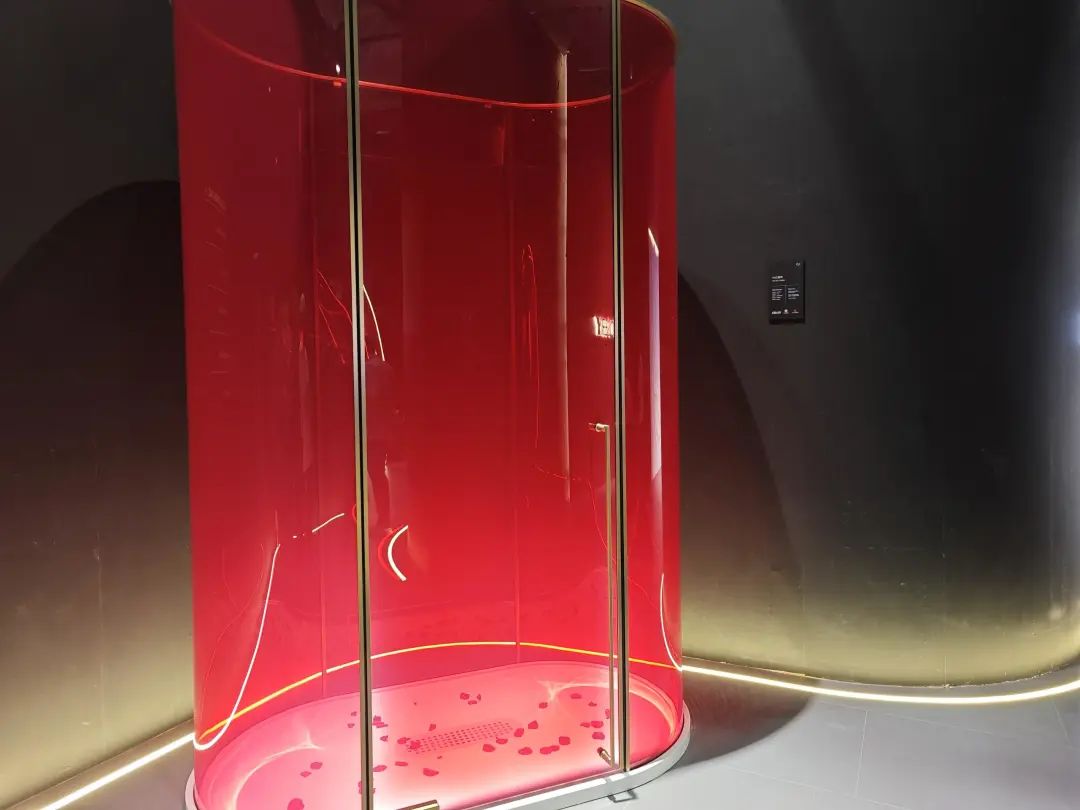 以淋浴房起家的玫瑰岛,展台设计同样以玫瑰为特色,营造神秘绚丽的空间氛围。展品方面,除了展出淋浴房外,还带来了大量浴室柜新品。