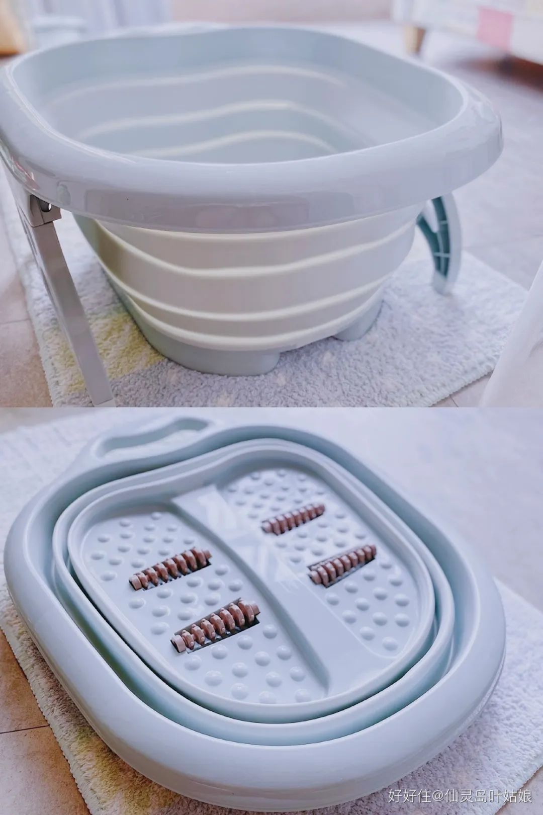 倒是折叠泡脚盆惊到我,虽然没有电动的牛,但是可折叠的省地方啊。尺寸可以两个成人一起用,不软塌,水位大约可到小腿。