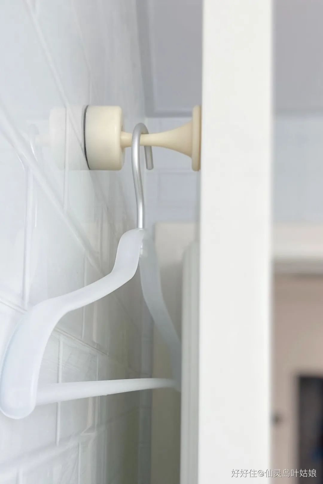 卫生间的墙是瓷砖,用免钉的门吸便宜牢固还不用打钉子,高空安装还可以挂衣架晒小物,一举几得,你自己说?