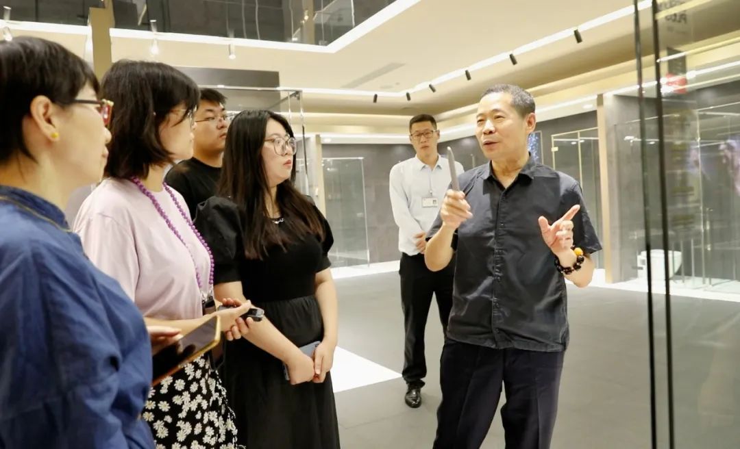 2022年8月19日,国家社会科学艺术学重大招标项目《1949-2019中国陶瓷艺术发展研究》子课题《建筑卫浴陶瓷发展研究》项目组成员景德镇陶瓷大学刘乐君教授带领该校设计学博士万紫婳、丁玲、硕士江博韬等人来到理想卫浴有限公司进行考察,与公司董事长危五祥,副总经理危一夫等人进行交流与采访。