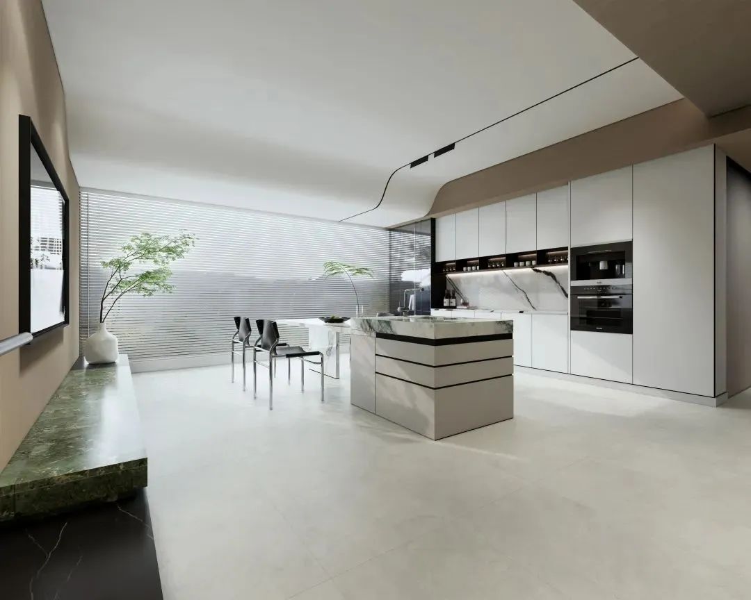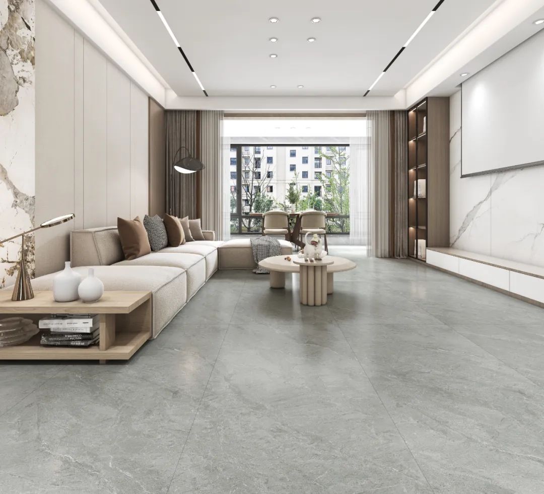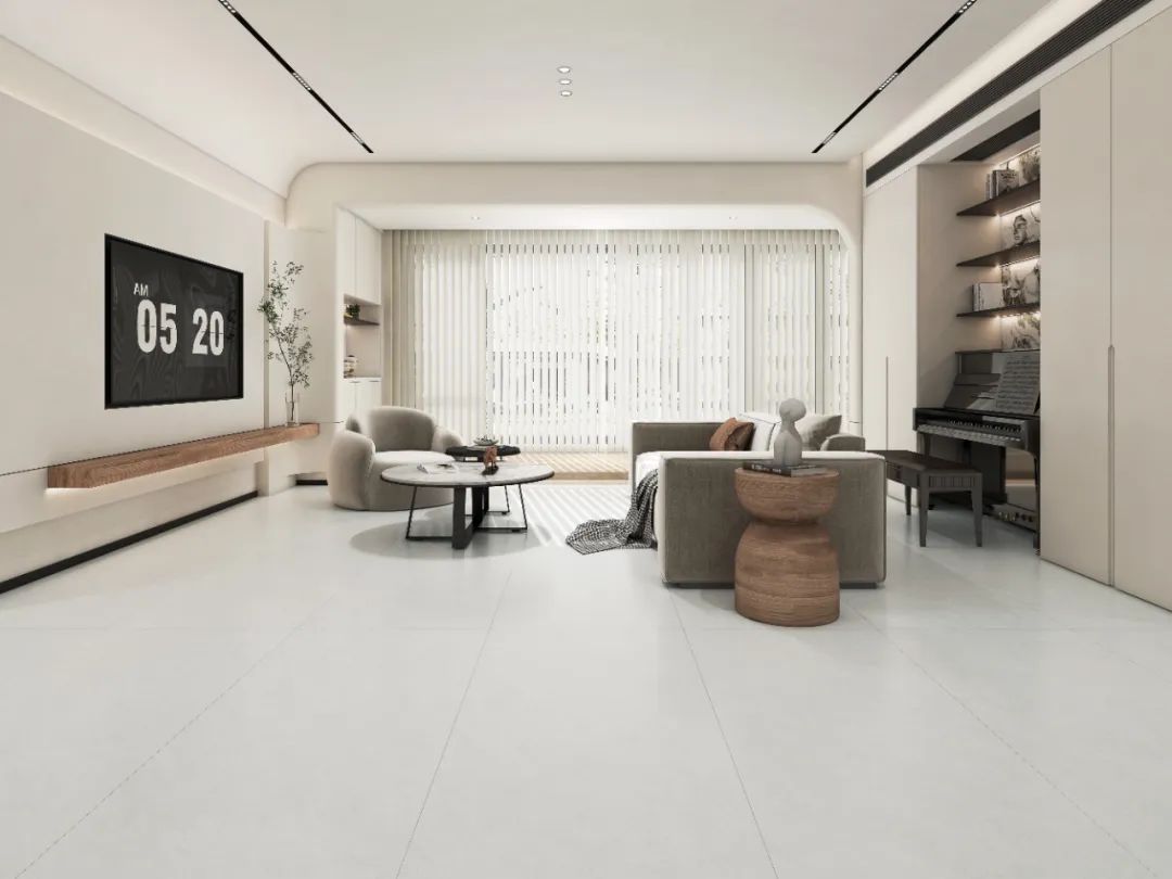 作为家居空间的“背景”,瓷砖花色不易过于花哨。质感大师的纹理选用微理石,这种纹理不像普通大理石瓷砖花纹如此夸张,也不会像纯色瓷砖一样毫无图案,视觉冲击力不强,但细节非常清晰,过渡自然,耐看且舒服,正如质感砖所追求的“远看是素色,近看有细节”。