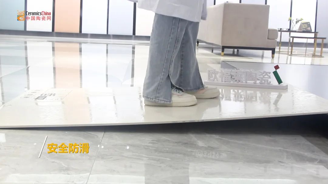 哑面的设计面不仅增加了欧福莱岩板瓷砖整体的奢华感和高级感,还大大提升了其防滑性。测评人员首先倒水淋湿倾斜的产品表面,再走上去,上下走动并无下滑迹象;之后,测评人员脚踩在产品表面上下摩擦,摩擦中其能感觉到有一股很大阻力。实验结果表明,该岩板瓷砖防滑效果非常出众,非常适合厨卫空间及有老人小孩的家庭