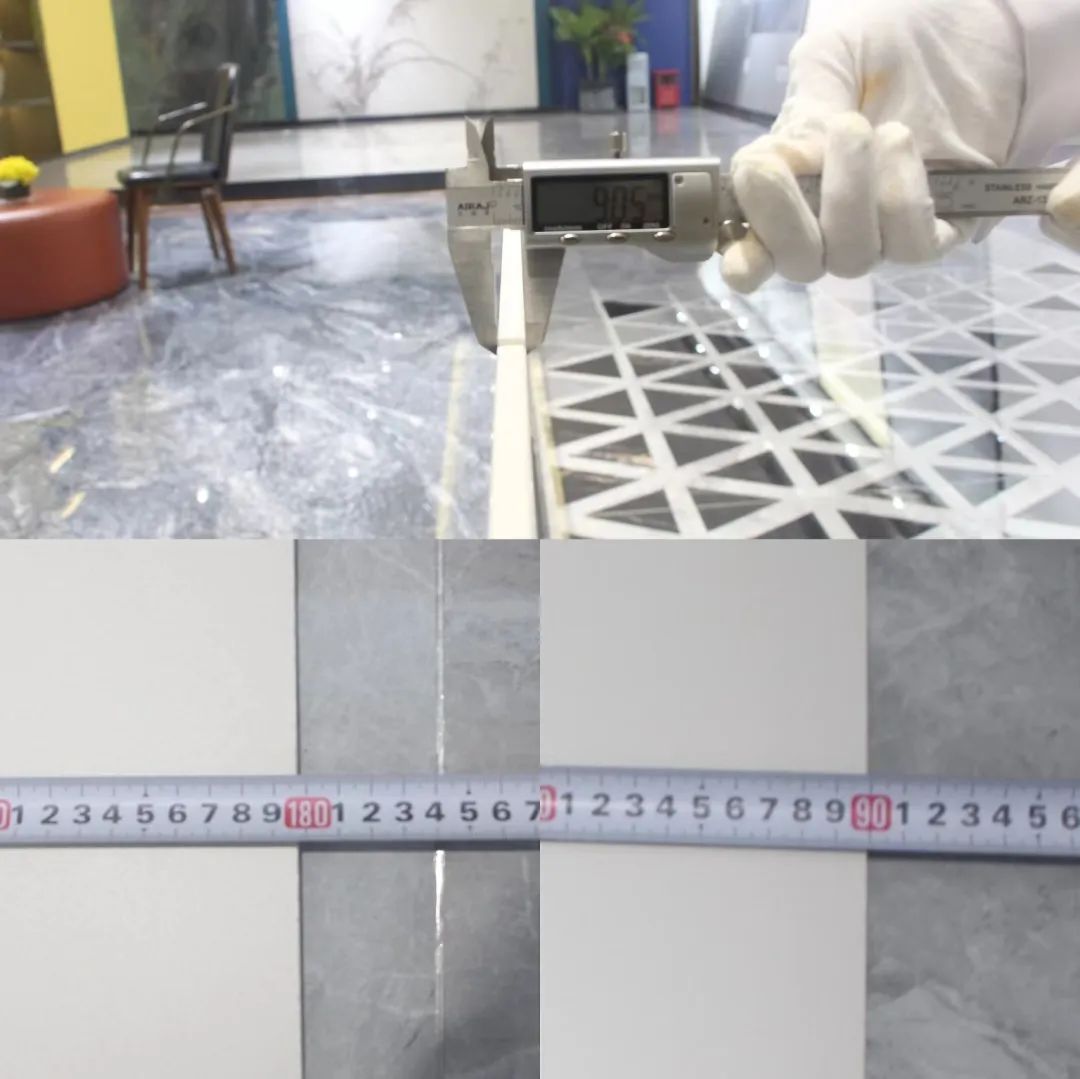 经过大吨位压机压制的欧福莱岩板瓷砖,不仅性能更优越,其表面平整度也相当出色。测评人员使用0.06mm的塞尺去测试产品与水平尺之间的缝隙,发现根本无法塞入,证明其在生产过程中平整度控制得非常好