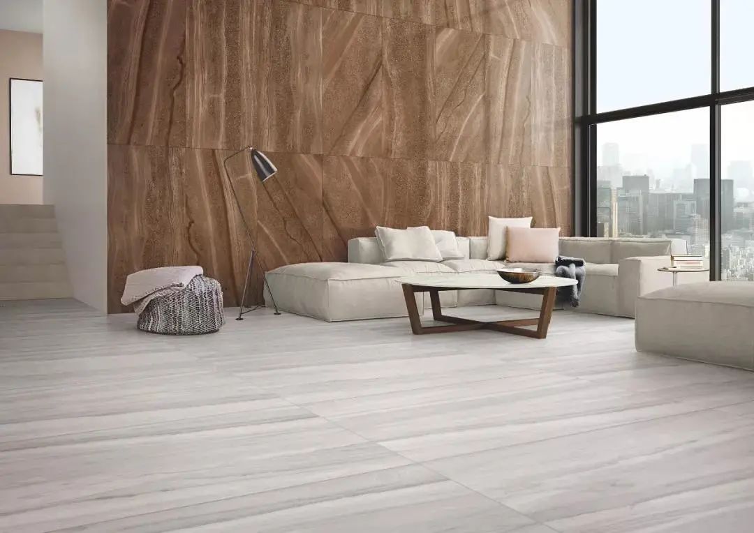 灰色系:当代流行色系,可细分为浅、中、深等不同色值,适用于大部分风格,如现代简约、北欧、工业等风格; 暖黄色系:相对温和的瓷砖颜色,主要用于现代、中式、欧式等风格,打造温馨、欢快的家居效果; 棕色系:主要是仿古砖,风格以美式为主; 黑色系:相对较难驾驭的颜色,一般会结合整体的空间设计,最好在设计师的搭配建议下选择;