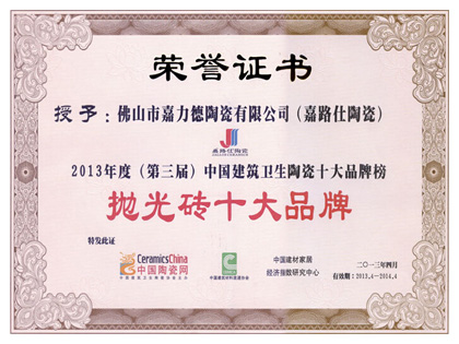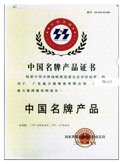 抛光砖品牌证书