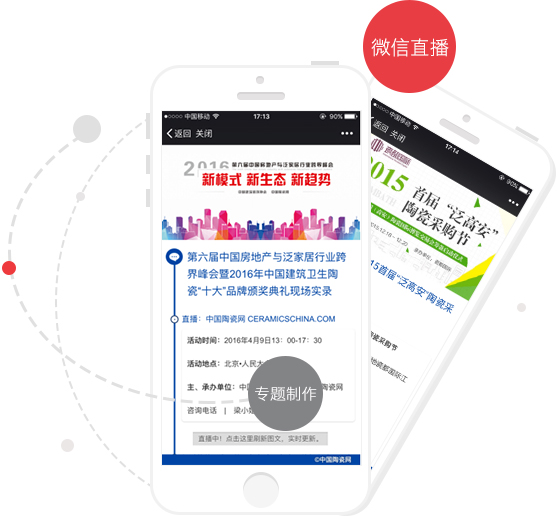 "手机微信直播"工具向"招商帮手"会员开放,利用会员账号登陆可制作如下专题
